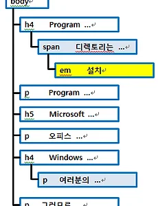 css3 combinator1 1.7 combinator를 이용한 선택자 구성과 규칙 만들기 1.7 combinator를 이용한 선택자 구성과 규칙 만들기 combinator는 여러 개의 단순한 선택자(selector)를 조합하여 하나의 통합 선택자(selector)를 만드는 형태로 자손(Descendant), 자식(Child), 인접 형제(Adjacent Sibling)과 일반적인 형제(General Sibling)으로 구분하며 이에 대한 개념을 이해하기 위해서 다음과 같이 HTML 문서를 작성합니다. Program Files 디렉토리는 여러분들이 설치하는 프로그램이 기본적으로 위치하는 곳입니다. Program Files 디렉토리 안에는 다양한 프로그램들 Microsoft Office 오피스 프로그램이 위치하고 있습니다. Windows 디렉토리는 여러분의 두뇌와 같은 역할을 하는 프로그램들이 .. 2013. 8. 1. 이전 1 다음